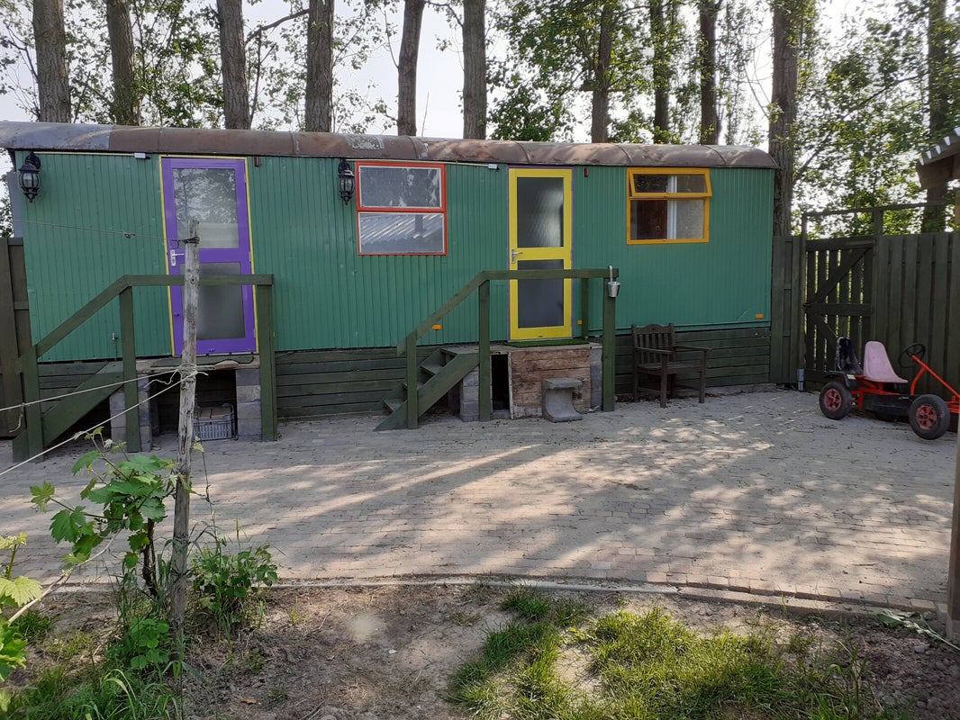 Bij de huisje vind u de sanitaire voorzieningen in een grote groene pipowagen. Rechts de toiletten en 3 wastafels, links 2 douches met warm en koud water en een wascabine met warm water. Tegen over de pipowagen staat het keukenhuisje met een 4 pitgasstel, koelkastje en warm water. Er is serviesgoed, bestek en glazen en er staan pannen.