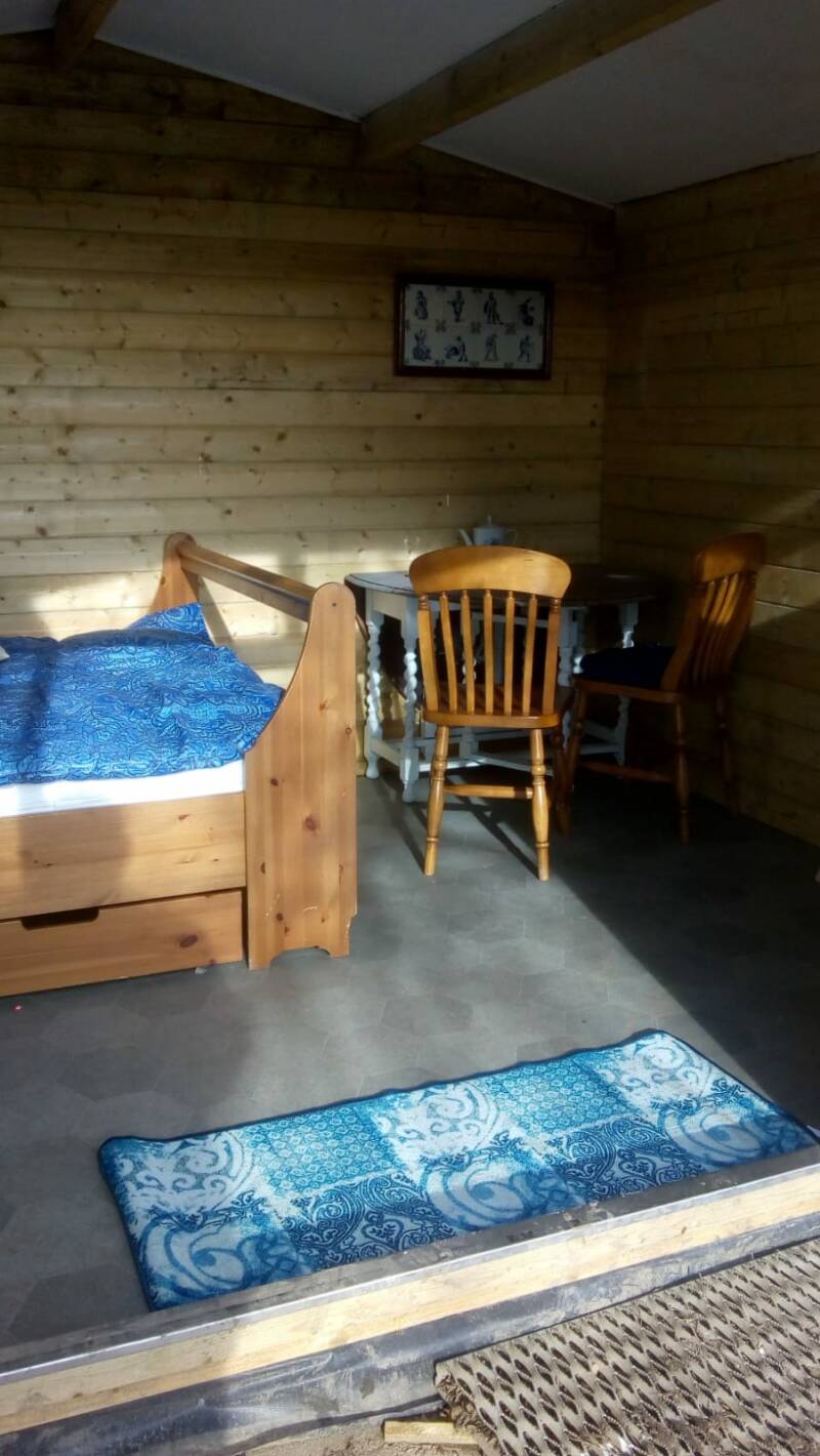 Er staan comfortabele bedden, een zitje, een terras met tafel en stoelen. Wilt u (uitgebreid) koken kan dat in ons keukenhuisje' waar u een keukenblok met 4 pits gasstel vind, en een aanrecht en spoelbakken om af te wassen en kleine wasjes te doen. Er staat ook een kleine koelkast die gedeeld moet worden met andere gasten. In de huisjes is een contactpunt voor de USB kabel voor de mobiel of tablet, er is geen 240V stroom. Vergeet uw kabel dus niet! Verder geen TV geen Wifi!