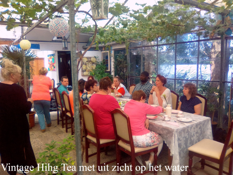 Tevens is Madeleine ook onze theetuin/terras gestart. Kom een lekkere kop thee halen, we hebben hele aparte soorten, vanaf 2024 gaan we onze eigen theesoorten kweken ! Geniet van een vintage high tea met het mooie servies van Madeleine, of high wine, Dat kan op dagen met mooi weer op ons terras of met minder weer in onze gezellige groene tuinzaal met zicht op het water.
